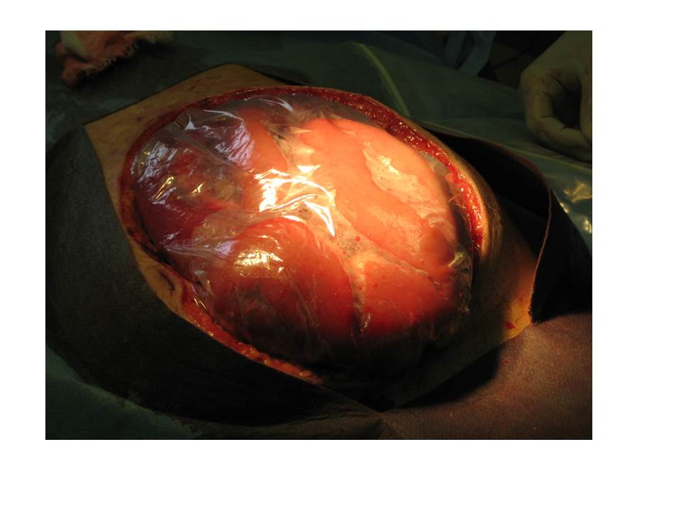 浮腫状の腸管を腹腔内に完納するのに手間取った一例です。