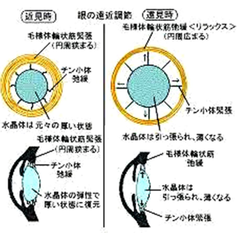 At this time, as shown in the figure below, the ciliary circular muscle becomes tense and the circumference becomes tight.